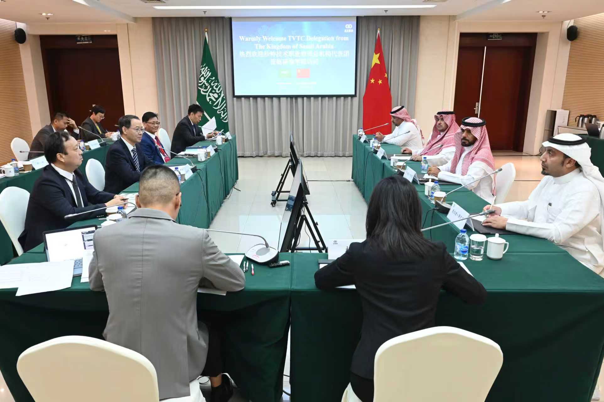 孙中和院长围绕落实《中沙技术职业领域谅解备忘录》和《中沙技术职业领域合作行动计划》,向TVTC代表团介绍相关情况。阿卜杜拉·卡西里先生对我院的热情接待表示感谢,表达了促进双方职业教育领域务实合作的愿望。双方围绕政策沟通、项目合作、技术交流、人员培训等共同关心问题进行了深入交流。