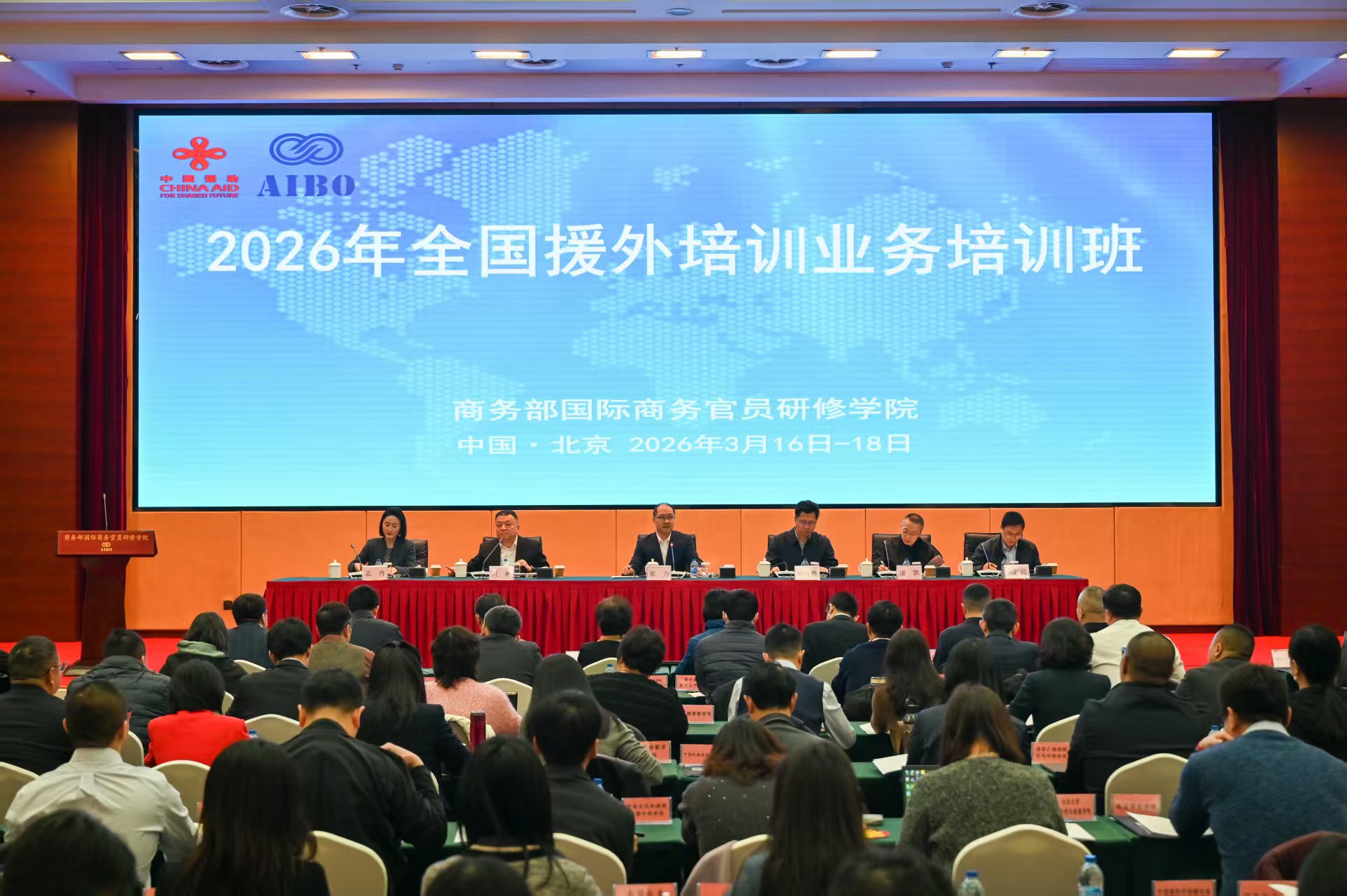 3月16日,2026年全国援外培训业务培训班在我院顺利开班,商务部部长助理张力同志出席开班式并讲话。会议由我院院长吴彬同志主持。商务部合作司司长赵春峰、一级巡视员钱春莺、中央外办综合协调局副局长康凯、国合署国际合作司副司长孟冉、财政部行政政法司处长张跃民、商务部交流中心副主任艾音方,研修学院领导班子全体成员;外交部、审计署,165家援外培训承办单位以及第三方审核机构相关负责同志参加此次培训。张力部长助理...