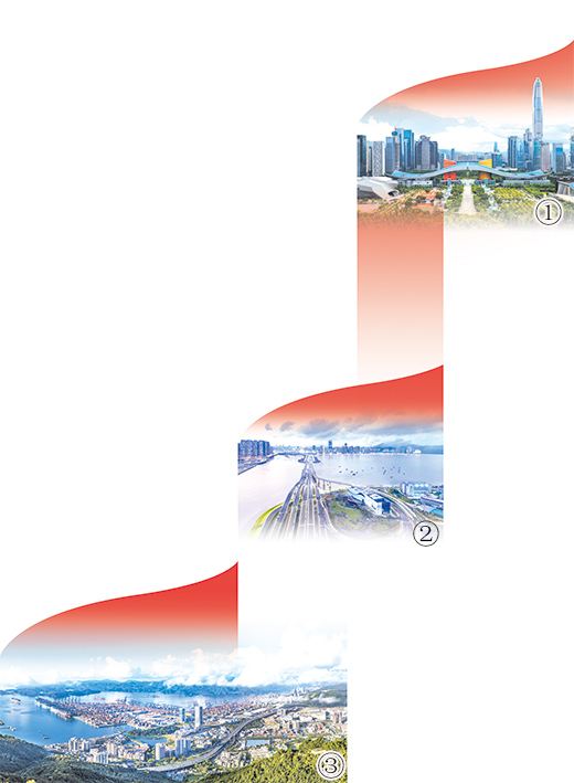 图①:建筑造型为大鹏展翅的深圳市民中心。 杨浩翰摄(人民视觉) 图②:珠海拱北湾。 资料照片 图③:深圳盐田港区。 深圳市盐田区档案馆供图 |