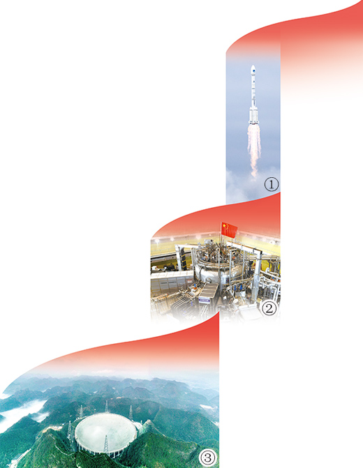 图①:2020年6月23日,我国北斗三号全球卫星导航系统最后一颗组网卫星在西昌卫星发射中心点火升空。 新华社记者 江宏景摄 图②:我国研发的被称为“人造太阳”的大科学装置EAST。 马启兵摄(新华社发) 图③:位于贵州平塘县的“中国天眼”,是当今世界最大的单口径射电望远镜。 新华社记者 欧东衢摄 |