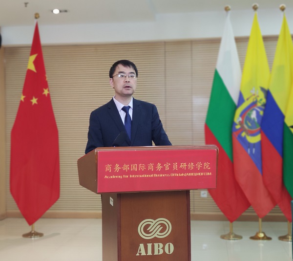 On April 12, 2021, Mr. Lei Hao, Vice President of the Academy for International Business Officials (AIBO),attended the online closing ceremony of Seminar on Enhancing Competence for Young Officials of Developing Countriesand delivered a speech.Official representativesfrom Ecuador, Kenya, Nepal and Uzbekistan also made remarks on the closing ceremony.
