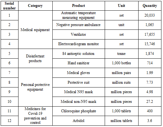 Table 1. Medical Supplies Sent to Hubei since the Onset of the Epidemic