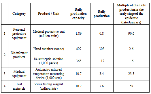 Increasing the production and supply of medical supplies and medical support services.Victory in the battle against Covid-19 depends on logistical support. In view of the extreme scarcity of medical protective materials in Wuhan during the early stage of the epidemic, medical workers on the front line overcame difficulties and used every item for the longest possible time, so as to conserve them in the race to save lives. To address the shortfall in medical resources while patient numbers surged, China exploited the full strength of its comprehensive and resilient manufacturing sector and its complete industrial chain.