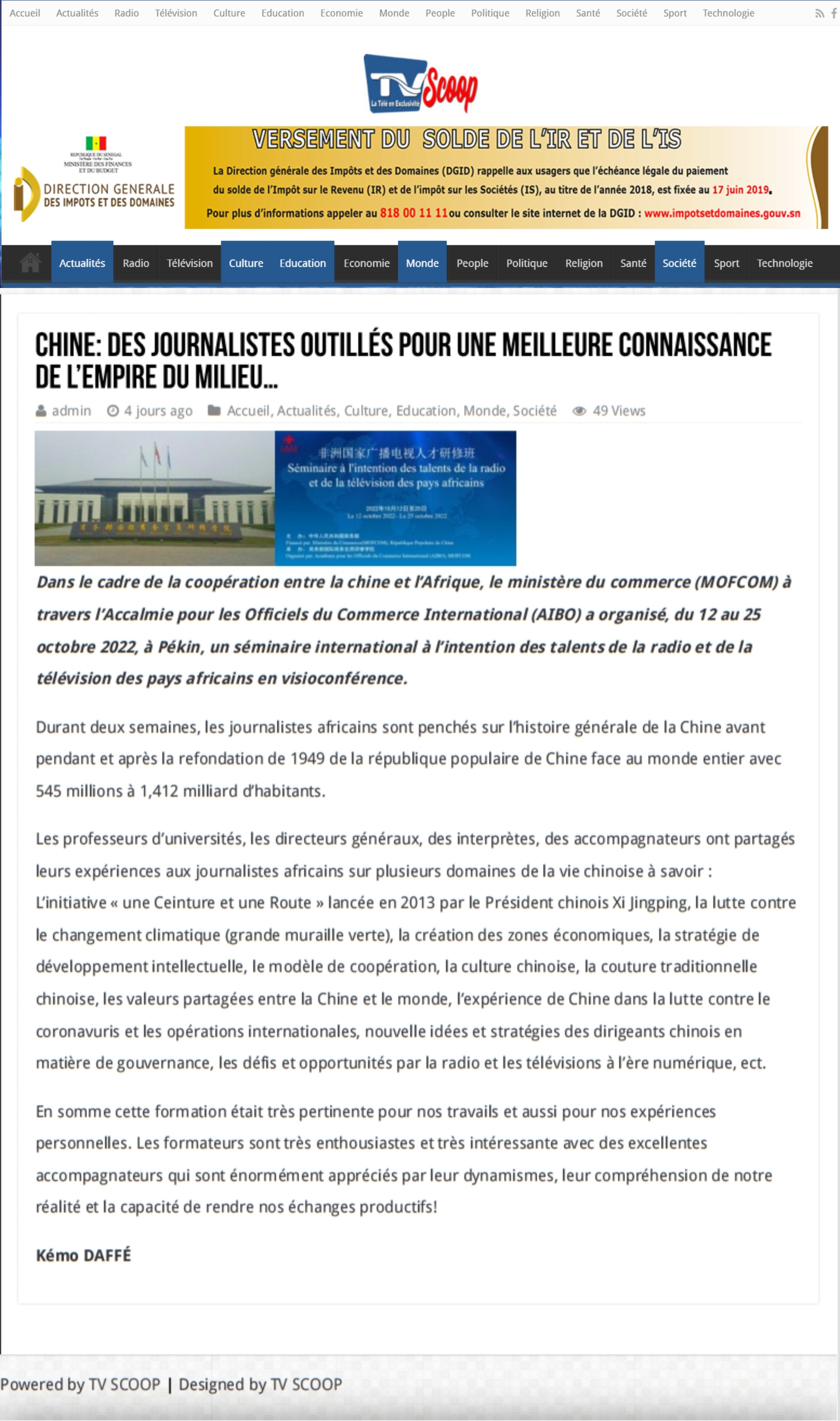 Report Published on La Télé en Exclusivité Scoop: “Chine: Des Journalistes Outillés Pour Une Meilleure Connaissance De L’empire Du Milieu…”