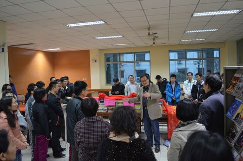 11月26日下午4:30,第23期驻外班学员到爱博图书馆开展了捐赠图书活动和搬书义务劳动。在班长刘少春的倡议和组织下,64名学员共捐赠了221本图书,大家在印有“爱及天下、博学古今”字样的道旗上留下了签名,表达了共同的愿望,随即一起动手搬运了两千多册图书,劳动持续了一个多小时。金旭院长出席了此次活动,他感谢外交官们为爱博学院奉献了自己宝贵的精神食粮,并指出,读书是一种信仰,更是一种享受,在信息化、国际化的今天,通过读书获取知识提升自己更加重要。他赞扬本期驻外班学员的创举为大家树立了典范,同时也希望大家将“爱及天下,博学古今”的精神带到世界各国,为中国的外交事业贡献一份力量。