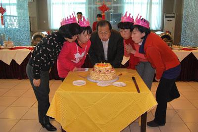 2012年11月的最后一天,金旭院长在罗宏副书记陪同下,来到了餐厅,为11月份过生日的学员和老师庆祝生日。