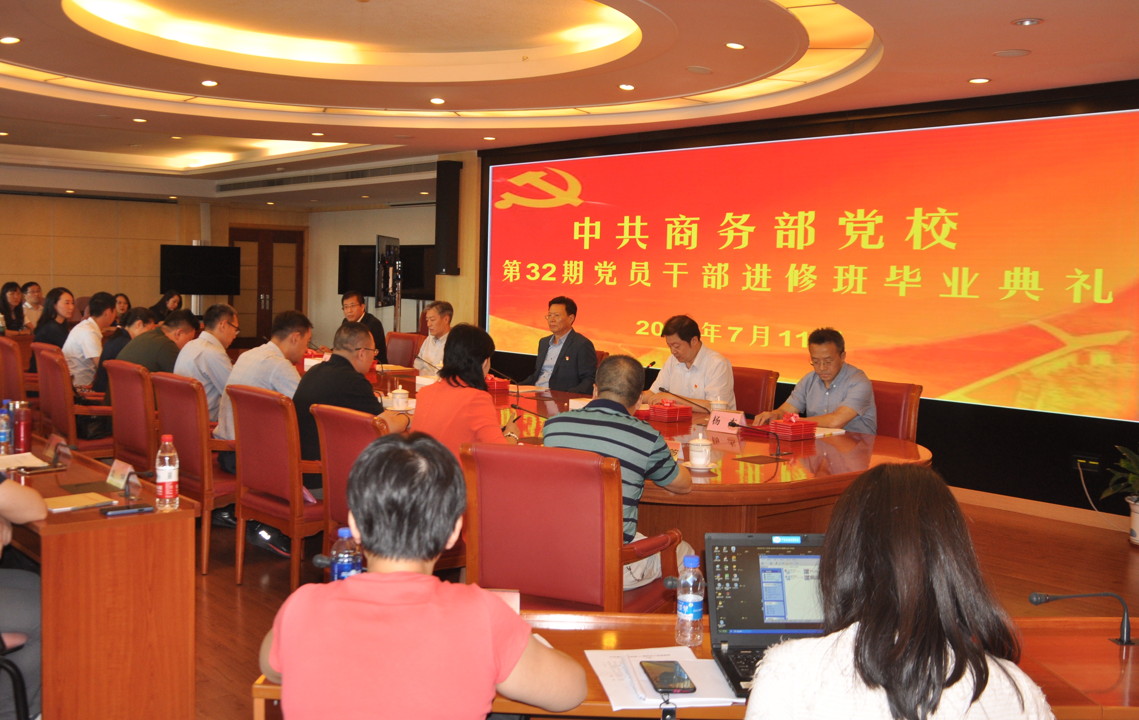 2019年7月11日下午,中共商务部党校第32期党员干部进修班毕业典礼在部机关举行,部党组副书记、副部长、国际贸易谈判副代表俞建华同志出席毕业典礼并发表重要讲话。