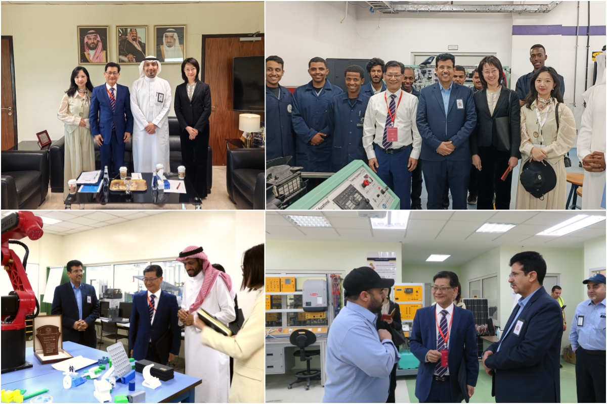18日上午,由中国商务部主办、我院承办的“沙特职业技术领域与经济发展海外研修班”开班典礼在利雅得隆重举行,陈润云副院长、沙特技术职业培训总机构(以下称TVTC)副署长白德尔·艾哈迈德、中国驻沙特大使馆公使衔参赞贺松共同出席并致辞,来自TVTC总部官员及其所属学院院长、技术专家共57名学员参加。本期研修班为期10天,是去年以来我院在沙特承办的第二期海外班,我院邀请国内职教领域权威专家及华为、海尔集团等企业高管,重点就职业技术教育、产教融合、工业4.0、数字经济、人工智能等沙方亟需的内容开展专题讲座、案例教学、实训考察和研讨交流。当天下午,陈润云率研修班全体学员赴沙特华为公司参观考察,开展现场教学和座谈交流。沙特通讯社对上述活动进行了专题报道。
