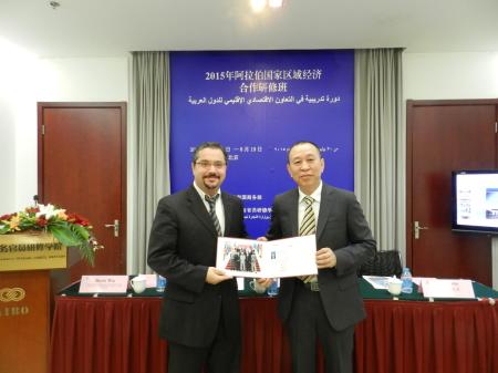 8月19日,黄登平副书记出席“2015年阿拉伯国家区域经济合作研修班”结业典礼并致辞。毛里塔尼亚经济部司长米杰迪欧比·侯赛因先生代表研修班发言。