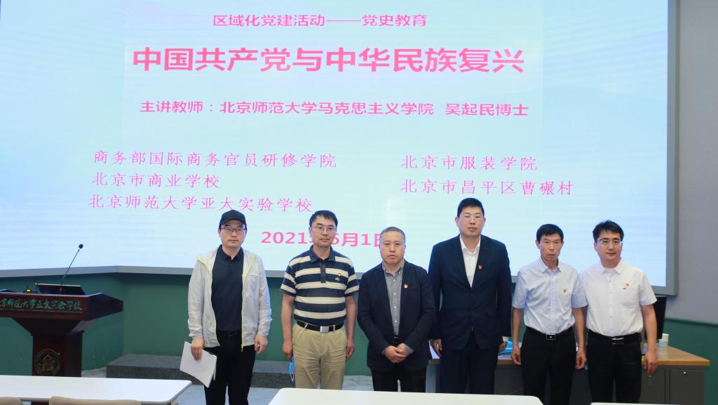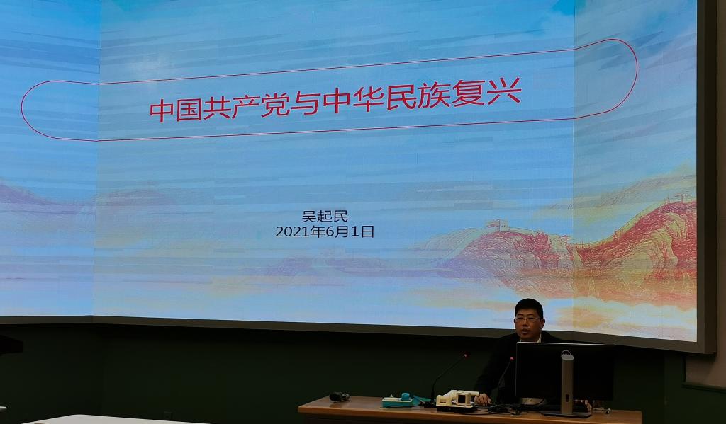6月1日,为庆祝建党100周年,按照《研修学院关于开展建党100周年“十个一”系列主题活动的通知》安排,我院与周边4家单位联合举办区域化党建主题实践活动,邀请北京师范大学马克思主义学院吴起民教授做题为《中国共产党与中华民族复兴》的讲座。