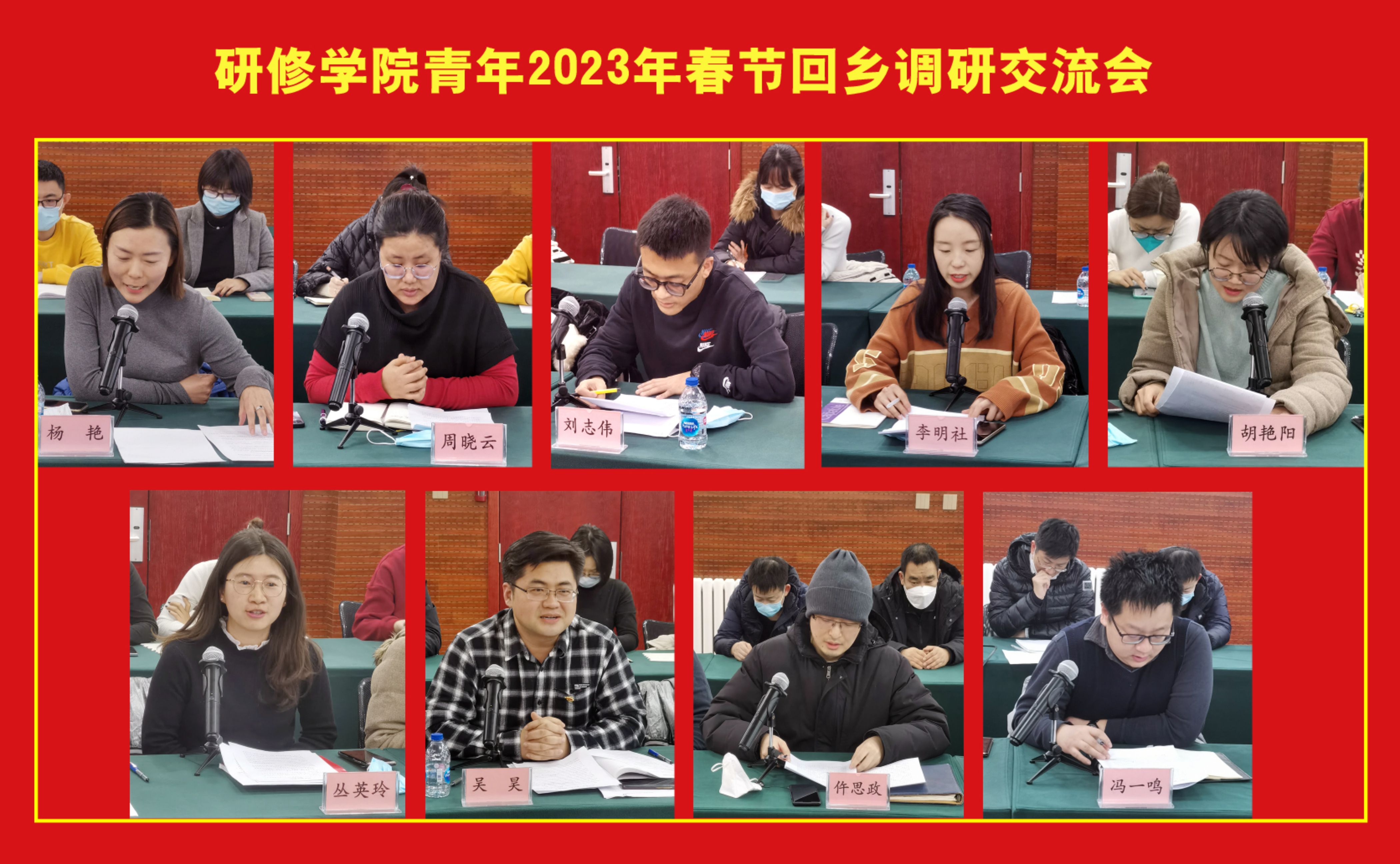 此次青年春节回乡调研是研修学院党委深入学习贯彻党的二十大精神、贯彻落实习近平总书记关于推进中央和国家机关青年干部下基层接地气重要批示要求的重要举措,院党委高度重视,就扎实做好落实工作进行安排部署。院团委迅速行动,充分动员,认真指导我院9个青年理论学习小组参与调研活动, 11名青年提交了调研成果。