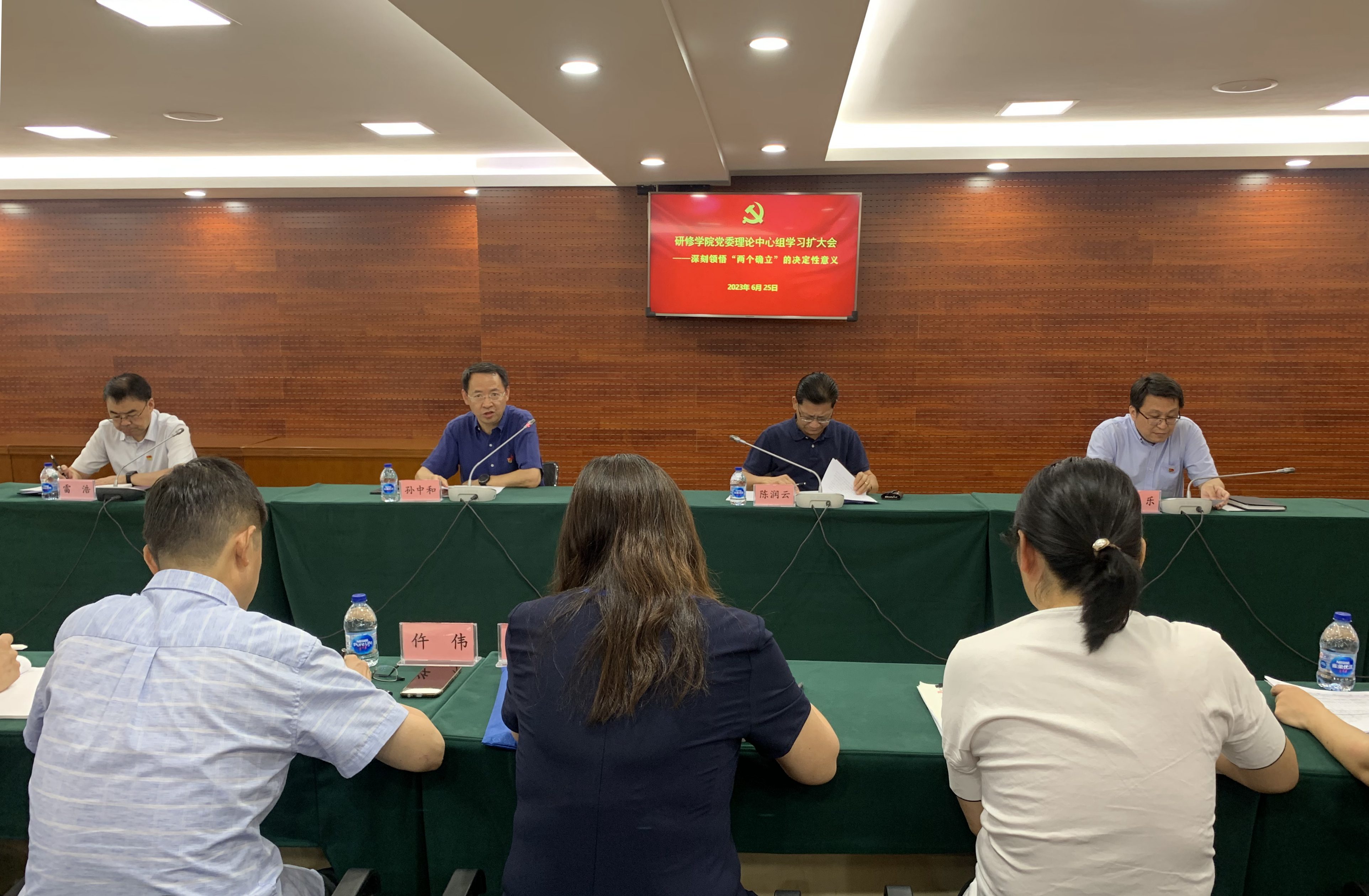 6月25日上午,学院党委理论学习中心组举行学习(扩大)会,专题学习深刻领悟“两个确立”的决定性意义,党委书记、院长孙中和主持学习会并作重点发言和总结发言,党委委员陈润云、雷浩、郑乐、徐凯、哈雨分别作交流发言,党支部书记代表赵建坡、青年理论学习小组组长代表王亚洁作列席发言。党委委员、全体中层干部、团委书记、青年理论学习小组组长共37人参加会议。