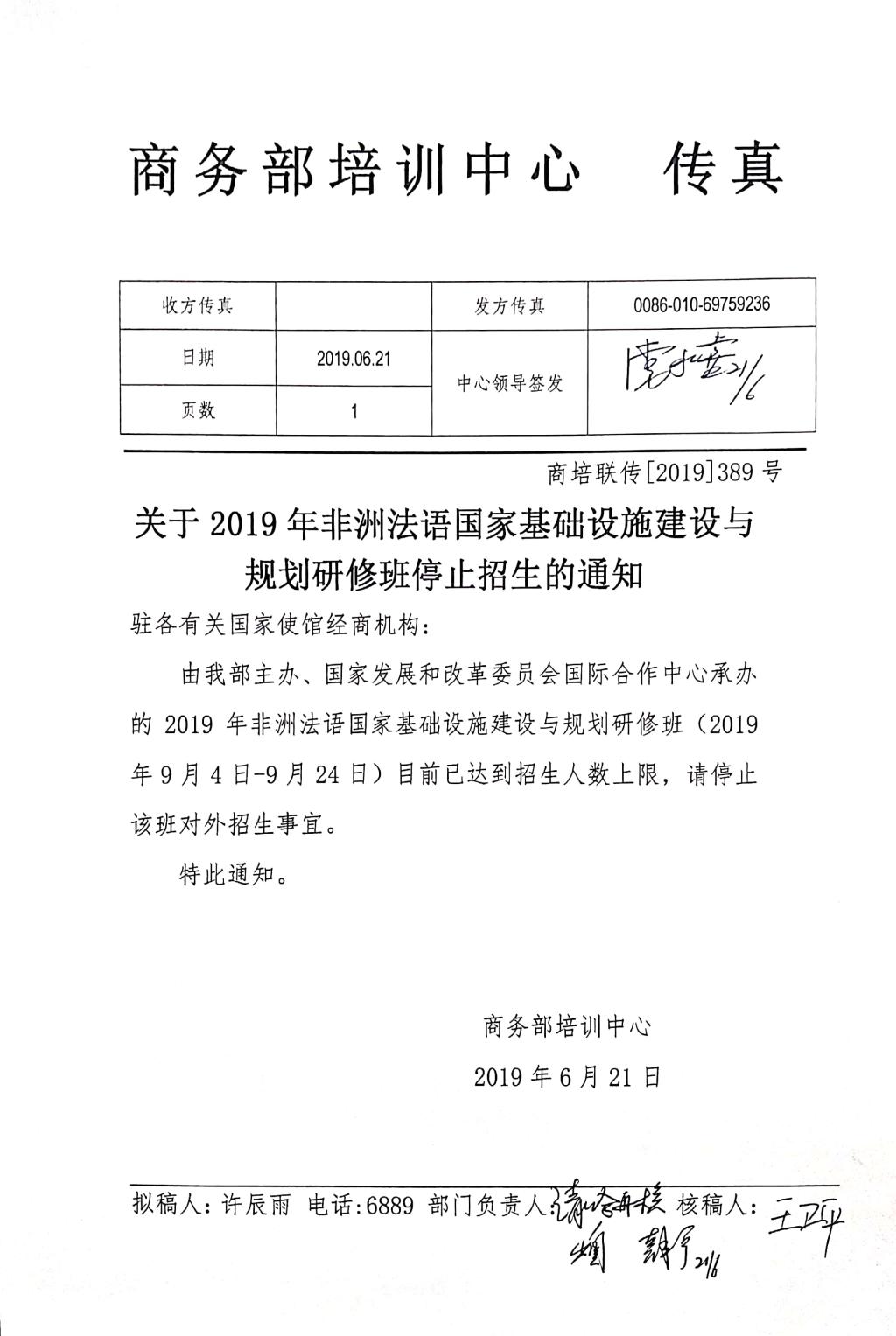 关于2019年非洲法语国家基础设施建设与规划研修班的停招通知