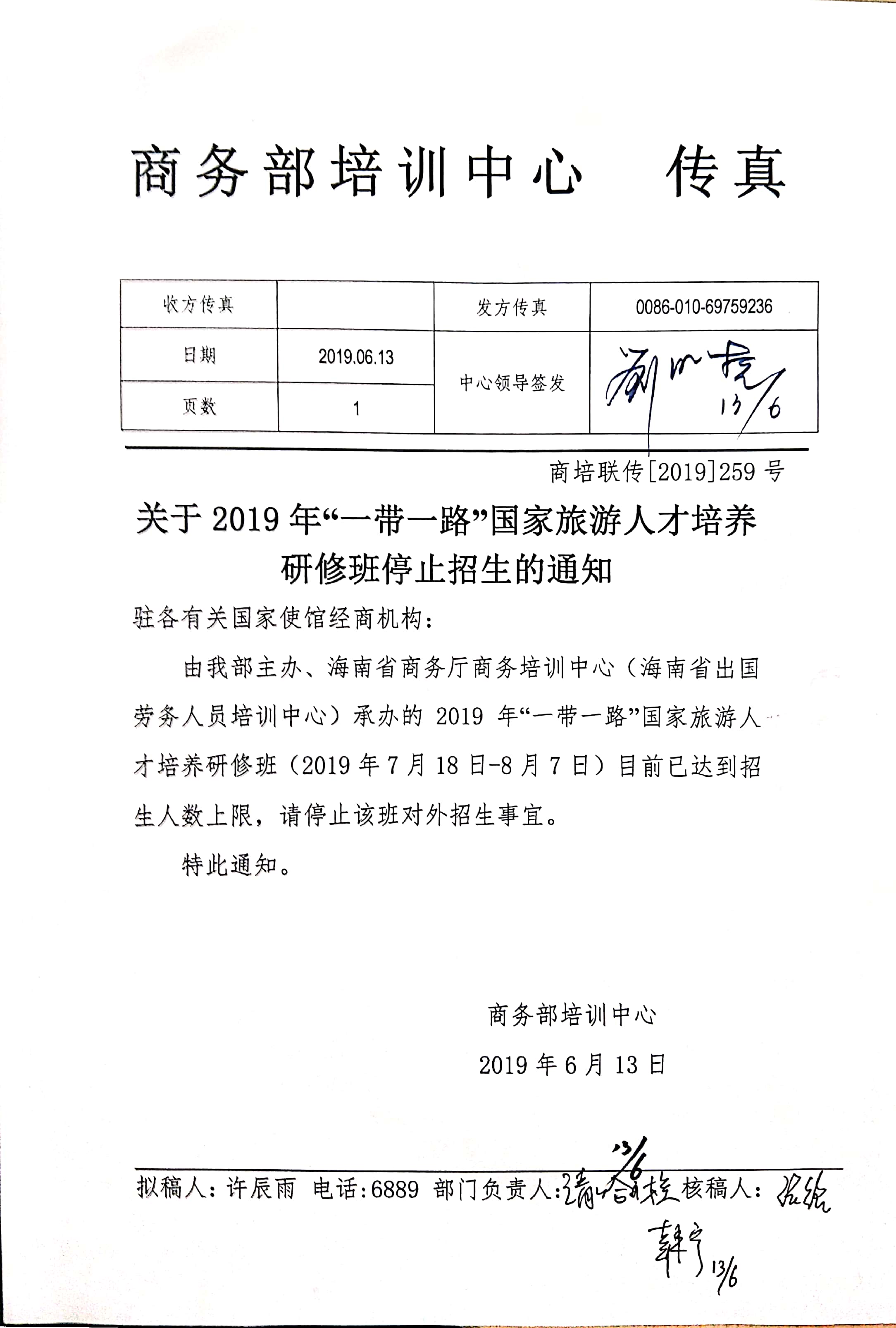 2019年“一带一路”国家旅游人才培养研修班停招通知