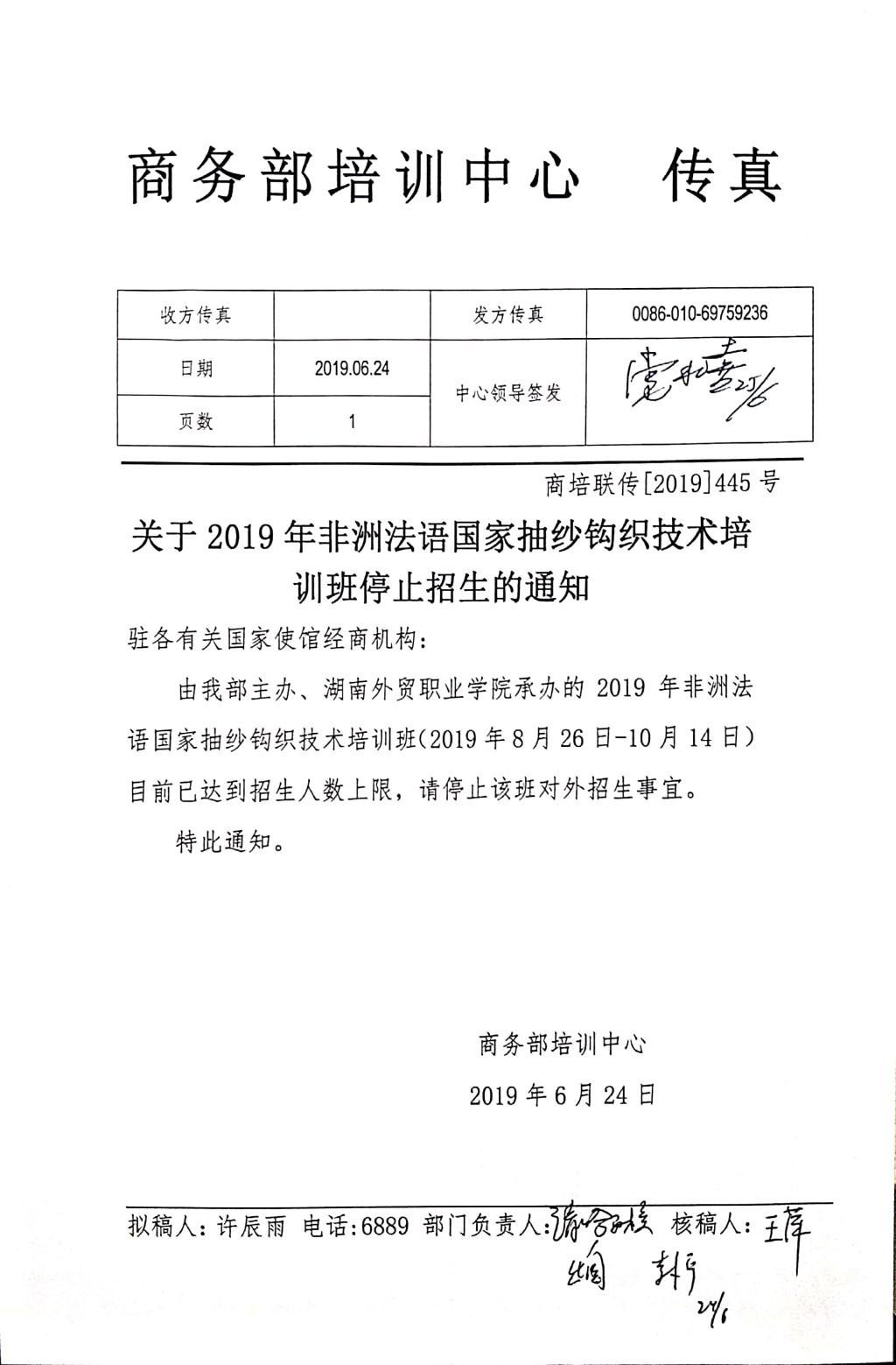 关于2019年非洲法语国家抽纱钩织技术培训班的停招通知