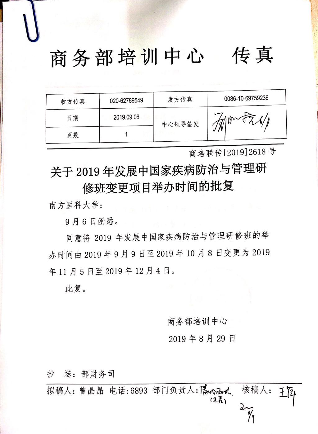 上一条:关于2019年发展中国家疾病防治与管理研修班变更项目举办时间的批复