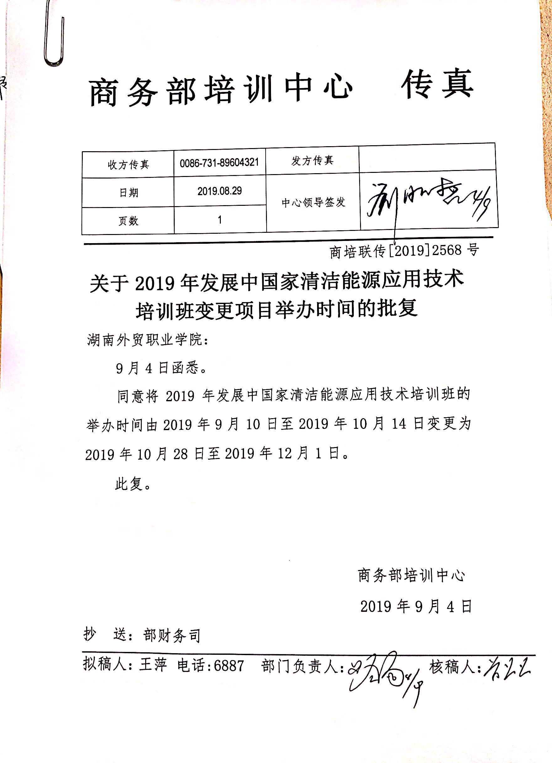 下一条:关于2019年发展中国家清洁能源应用技术培训班变更项目举办时间的批复