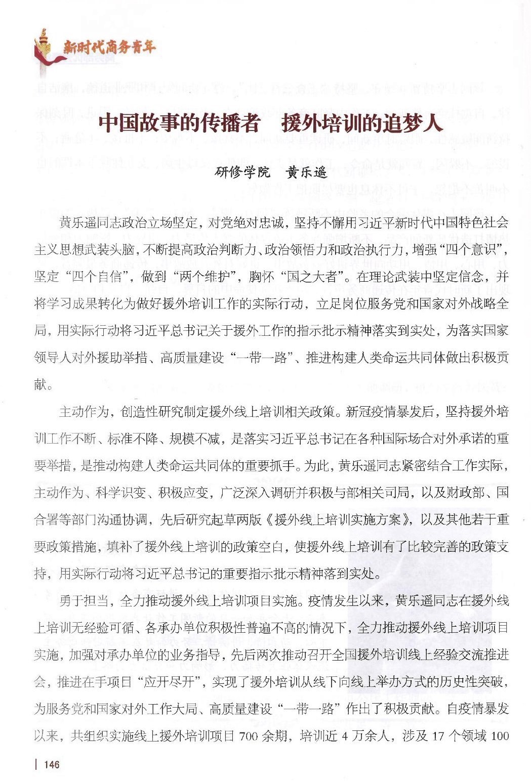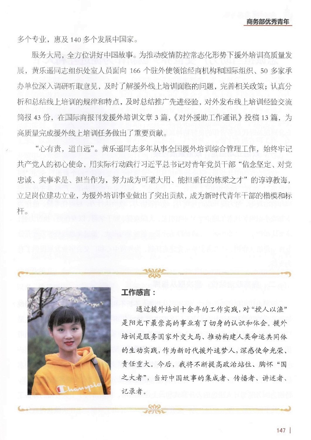 光荣榜 联络办黄乐遥副处长获“商务部优秀青年”荣誉称号