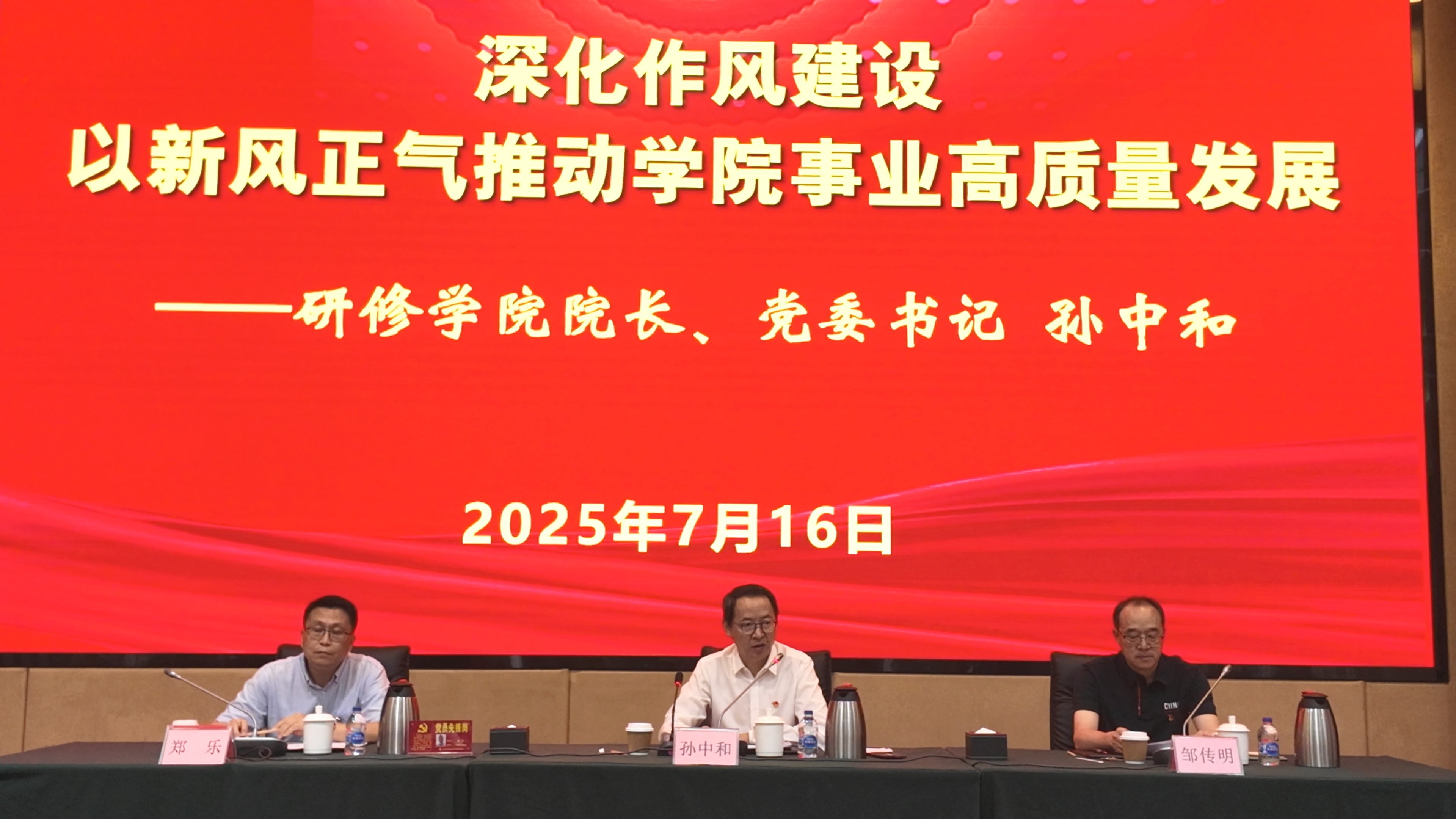 孙中和同志围绕深刻领悟习近平总书记关于作风建设重要论述的重要意义、深刻认识贯彻中央八项规定精神取得的伟大成就、以新风正气推动学院事业高质量发展,为全体党员干部讲专题党课,强调作风是一个单位的名片,是推动事业发展的保证,要结合正在全党开展的深入贯彻中央八项规定精神学习教育,在“学”上入脑入心、走深走实,在“查”上直面问题、不遮不掩,在“改”上即知即改、立行立改,在“干”上勇于作为、久久为功。