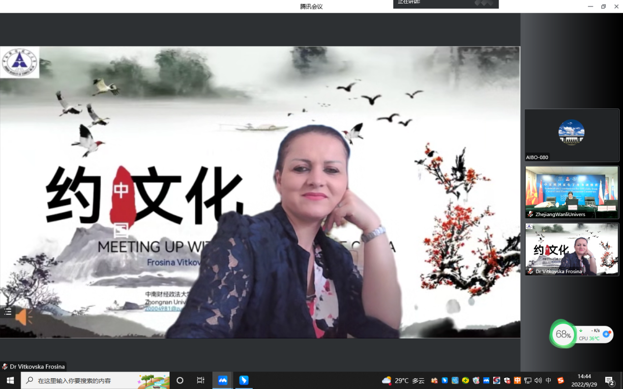 弗洛西纳女士是中南财经政法大学应用语言系教授,已在武汉生活了15年,期间一直通过举办各种类型的学术讲座和文化交流活动向中国民众展示着北马其顿文化,促进相互了解,进而推动中国与整个中东欧国家的合作。弗洛西纳视武汉为第二故乡,2020年当新冠疫情来临时,她选择“留下”,坚守在武汉,与学校师生共同抗疫,并肩作战。“疫情暴发时,北马其顿驻华大使馆曾组织过在华公民撤离,但我选择留在武汉,因为我相信中国政府,我爱武汉”。在武汉封城的100天里,弗洛西纳不仅克服重重困难,坚守教学一线,为中国学生搭建起“云课堂”,还投入更多精力于中国-中东欧合作研究,编写了汉语、英语、马其顿语三种语言版本的《荆楚之故事》和《最常用的3500汉字以及相关的HSK6词汇汉马词典》,发表了论文《论中国-中东欧合作中的荆楚精神》。“我可以负责任地说,早在公元前6世纪,我所在的中国楚地便同欧洲有了贸易往来,开辟了人类历史上第一条贸易道路:玻璃之路。这条道路比著名的丝绸之路还要早4个世纪。”研修班中,她兴奋地向我们介绍着研究成果。