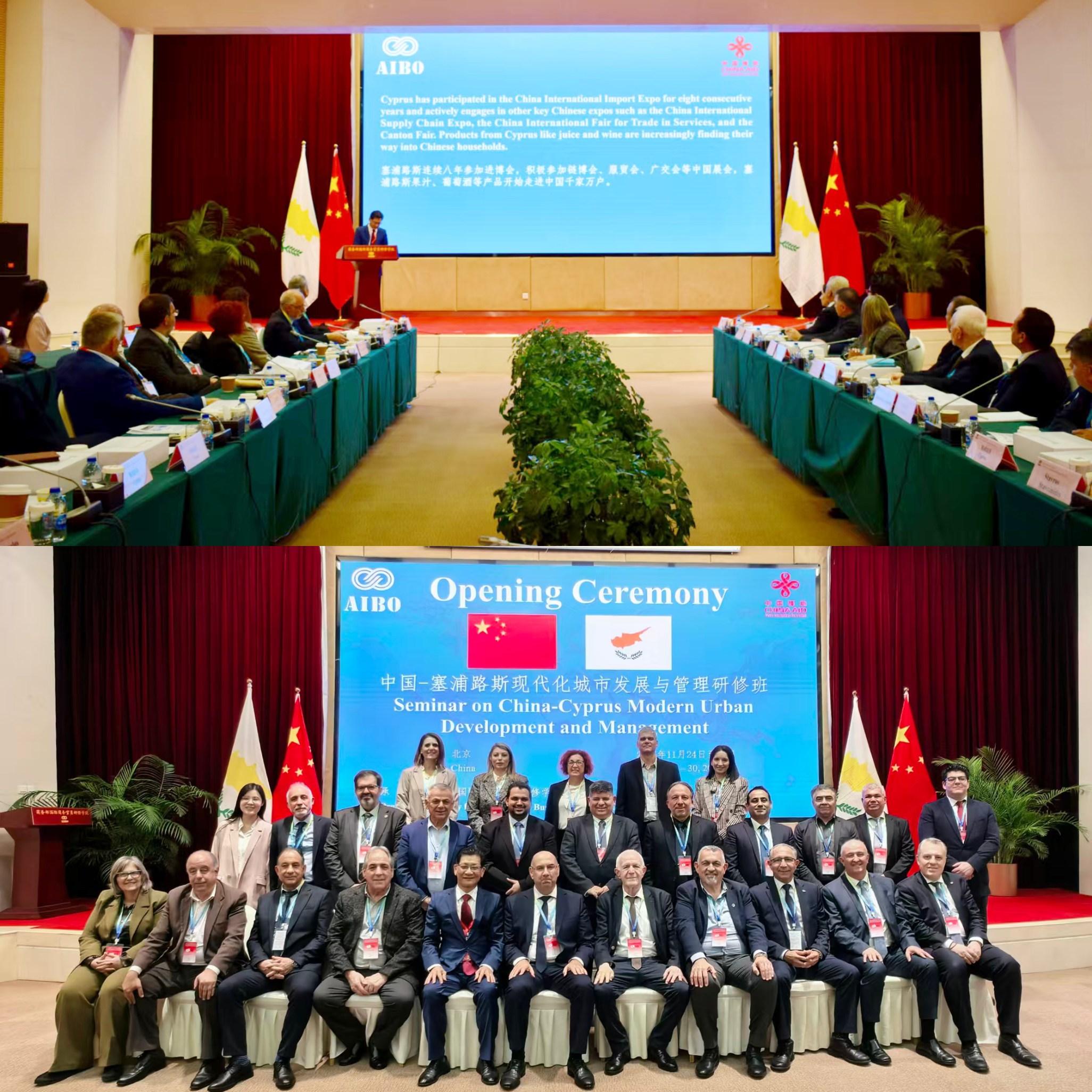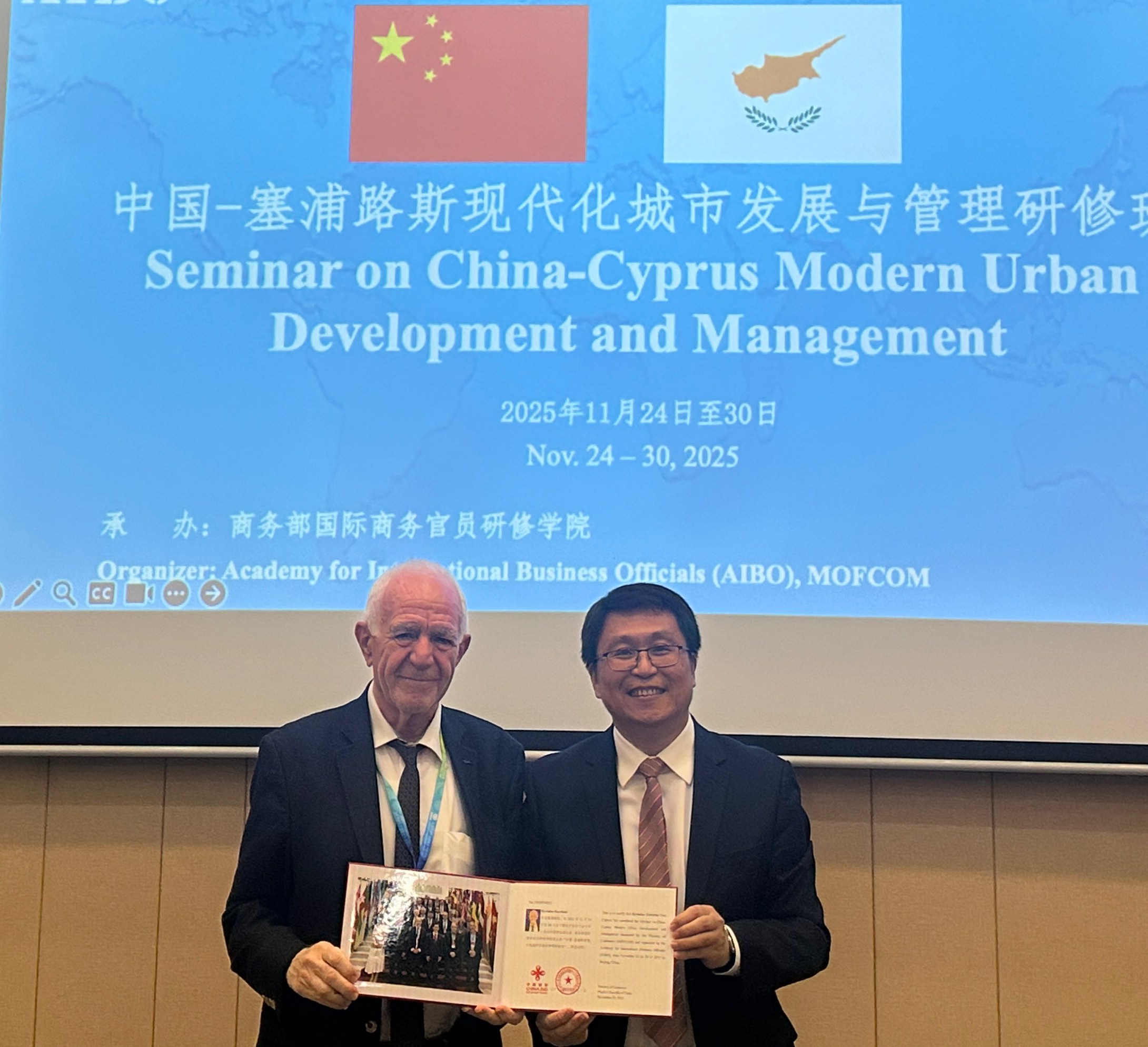 2025年初冬,小雪节气刚过,北京寒意渐浓。此时的商务部国际商务官员研修学院却一片温煦景象。会议室内,灯光柔缓洒落,陈设简雅有致,国旗静静伫立,氛围庄重温暖。就在这样一个温馨的早晨,学院迎来一批特殊的客人——“中国-塞浦路斯现代化城市发展与管理研修班”的27位学员。