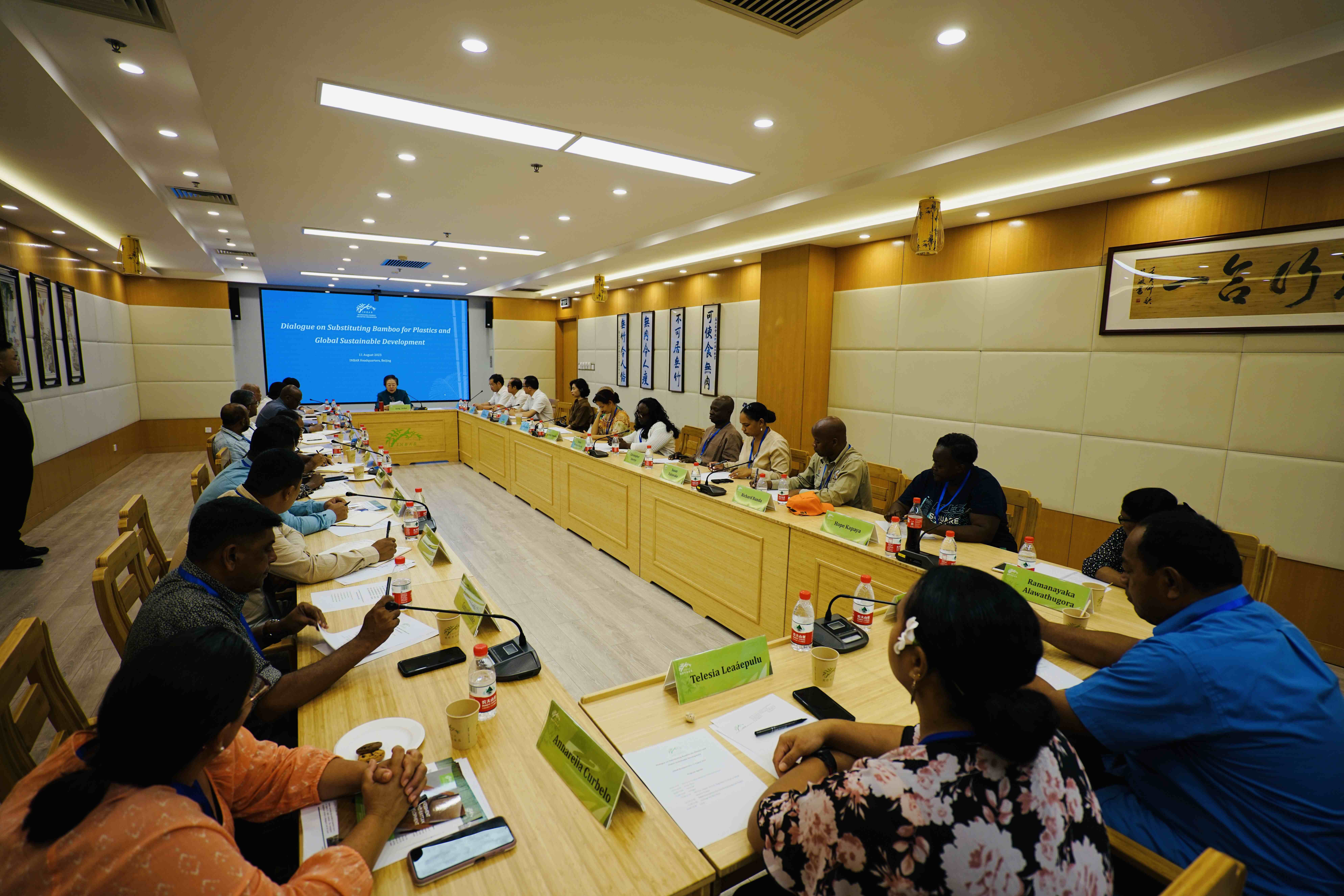 参观国际竹藤组织并就“以竹代塑”倡议开展交流