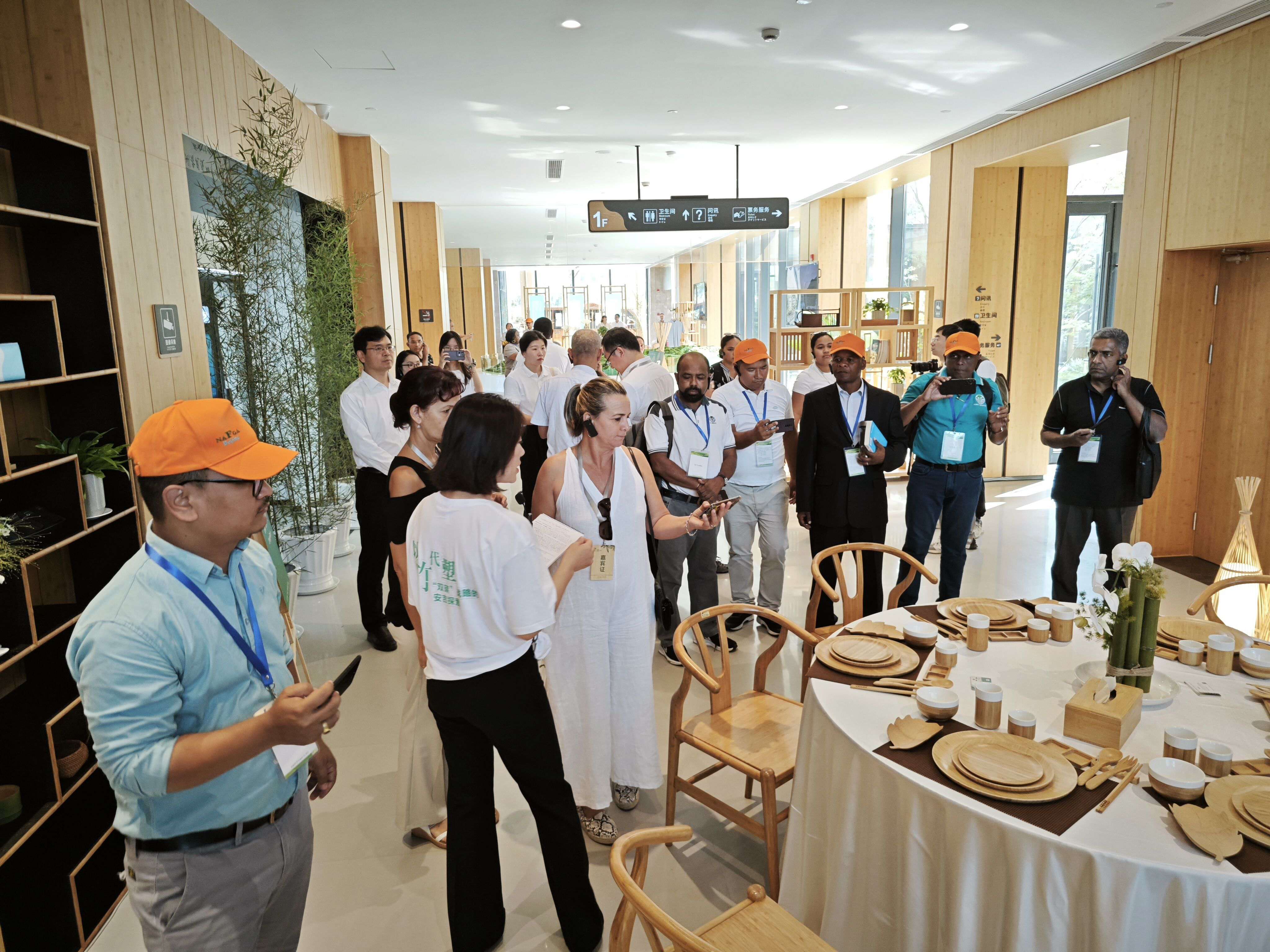 “以竹代塑”得到积极响应。2022年,中国与国际竹藤组织共同发起倡议,将在全球深化“以竹代塑”合作,更好发挥竹子在代替塑料产品方面的突出优势和作用。中国作为竹资源大国、竹产品利用大国,在竹子培育、利用、创新研究等方面发挥着重要引导作用。在研讨班期间,学员参观了国际竹藤组织,参加了国际(安吉)“以竹代塑”创新大会,亲身体验竹产品,感受竹文化,对“以竹代塑”倡议表现出强烈的兴趣。陪同参观考察的埃塞俄比亚驻华公使所罗门·特斯法亚·特里拉(Solomon Tesfaye Telila)先生赞叹中国大力发展竹产业为助力“双碳”目标、促进绿色经济发展做出的贡献。他认为竹子生长快,易于管理,竹产品制作工艺相对简单,十分适合发展中国家进行推广。研讨期间,他主动与中国有关竹产品企业对接联系,希望能为埃竹产业发展引进投资项目,助力绿色发展。