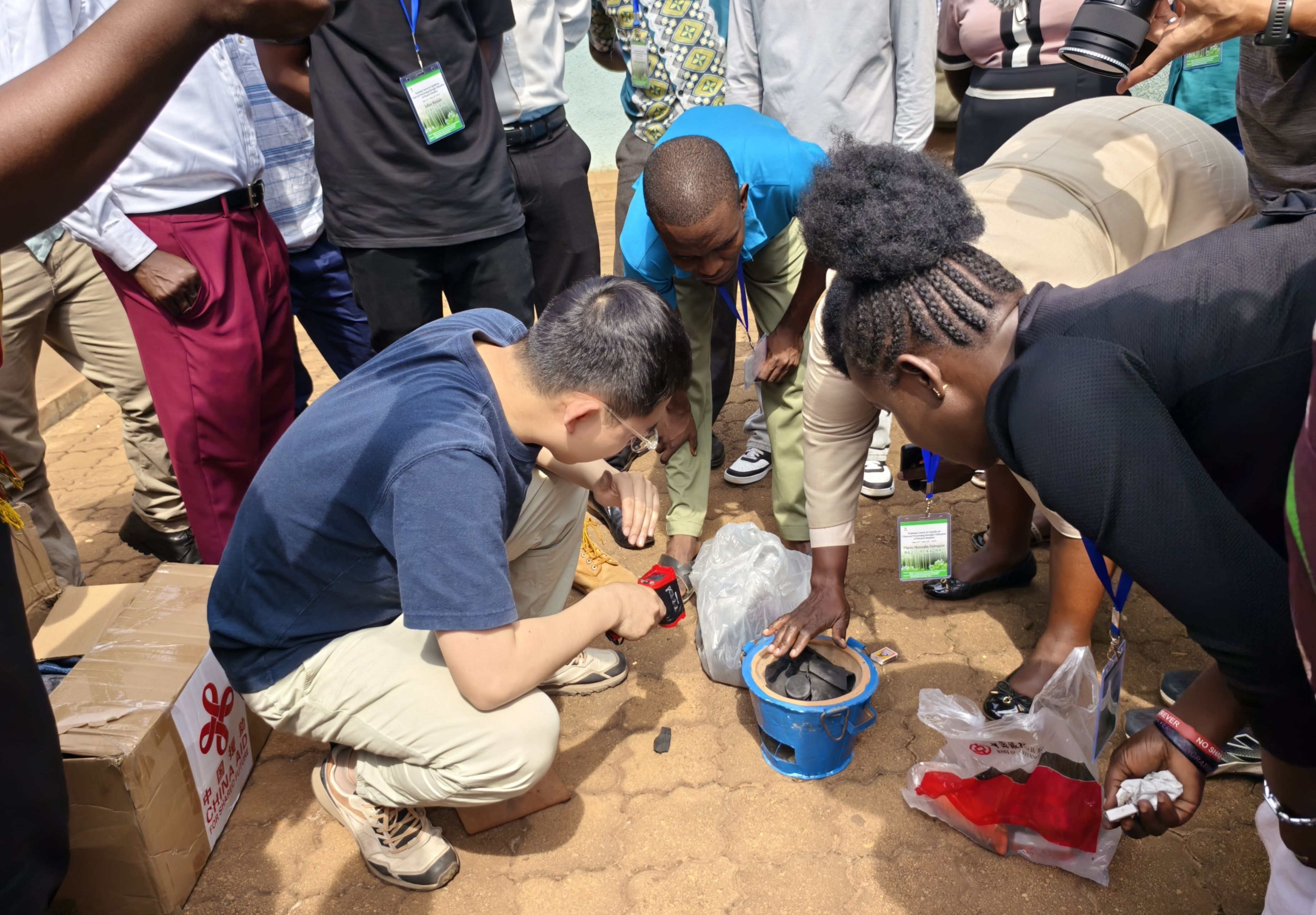 3月19日的乌干达首都坎帕拉,烈日如火。然而,在水资源与环境部气象局的院子里,气氛比这烈日还要炽热。一场别开生面的“炭火对决”正在这里激烈上演——来自“乌干达竹木炭生产与利用海外培训班”的学员们,与中国竹炭专家陈冀锐老师,正用中国机制竹炭和乌干达本土木炭展开一场关乎“速度与耐力”的较量。