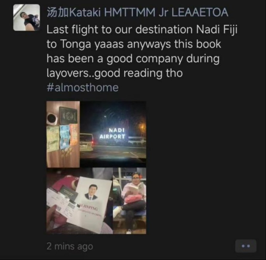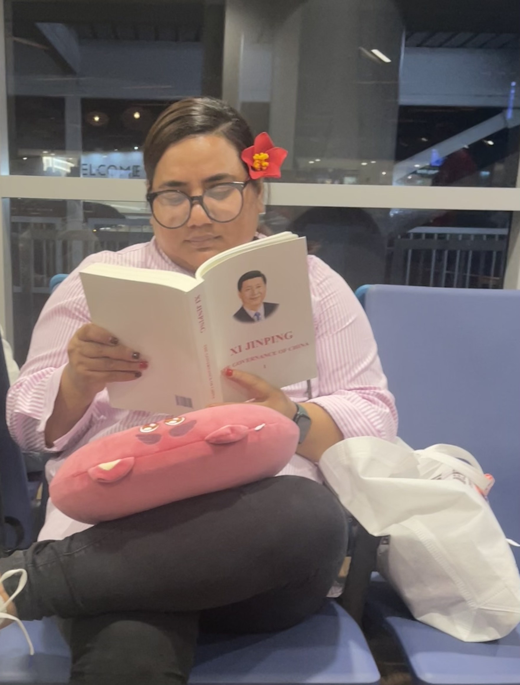 课程之余,卡塔琪喜欢阅读《习近平谈治国理政》,并与中方工作人员交流书中的内容,她表示,从汤加的角度看,书中的很多理念和词汇是相对陌生的,但是通过与中方工作人员的沟通以及自己在网上的搜索,她对“一带一路倡议”“人类命运共同体”等概念有了更深刻的理解和认同,特别是经历过新冠疫情后,“人类命运共同体”的概念高度概括了“天下一家”的想法。即便是在研修班结束后的返程途中,卡塔琪也在阅读《习近平谈治国理政》,并发朋友圈表示:“这本书一直是中转过程中良好的陪伴”。