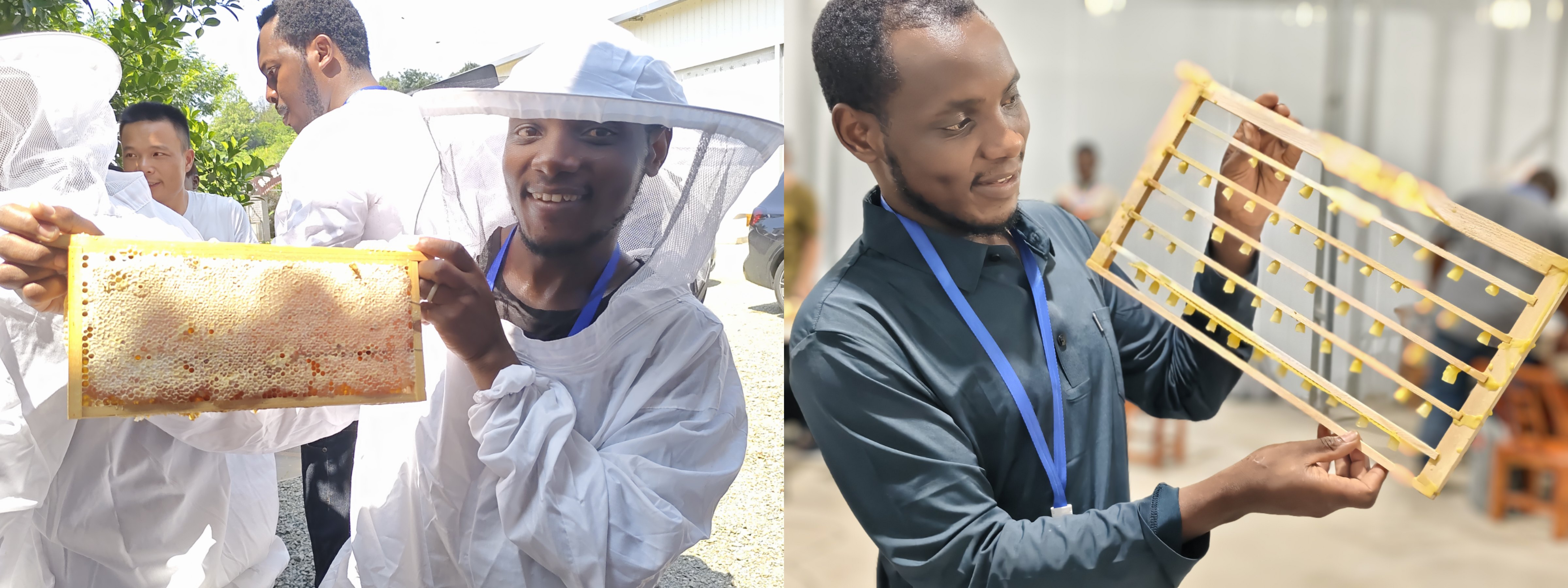 在卢旺达基萨加拉区的山坡上,奎泽拉曾日复一日地穿梭在蜂箱之间。作为BeeGulf有限公司的CEO,他熟悉每只蜜蜂的习性,也深知家乡养蜂业的局限。直到2025年,一则消息改变了他的人生轨迹—卢旺达农业青年协会任命他为基萨加拉区的青年项目经理,并推荐他参加由中国商务部主办、湖南省农科集团有限公司承办的卢旺达蜜蜂养殖及蜂蜜加工生产技术培训班。“就像工蜂嗅到了遥远的花香,我立刻明白,这是一个千载难逢的机会。”奎泽拉收拾行李时,反复检查记录家乡蜂群常见问题的笔记本,那些困扰他许久的难题,都等着在遥远的中国寻找答案。“我飞往中国的旅程,就像一只工蜂去寻找最丰饶的花海。”在与学员交流时,他动情地说,“我的使命只有一个:尽可能多地采集“花蜜”并带回国!