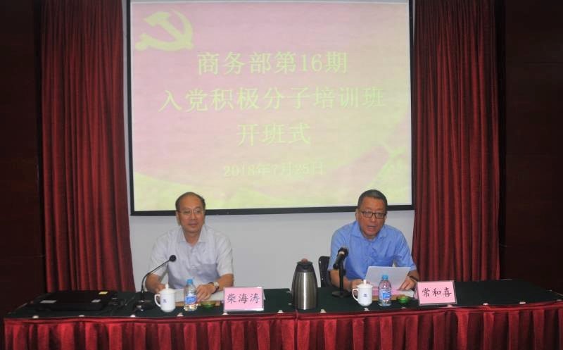 7月25日上午,商务部第16期入党积极分子培训班开班式在我院举行。商务部直属机关党委常务副书记柴海涛出席开班式并发表讲话,我院党委书记、院长常和喜主持开班仪式并致欢迎辞,院党委副书记、纪委书记黄登平...